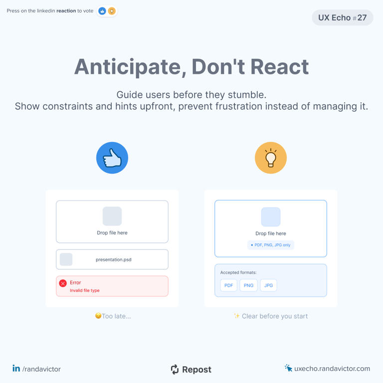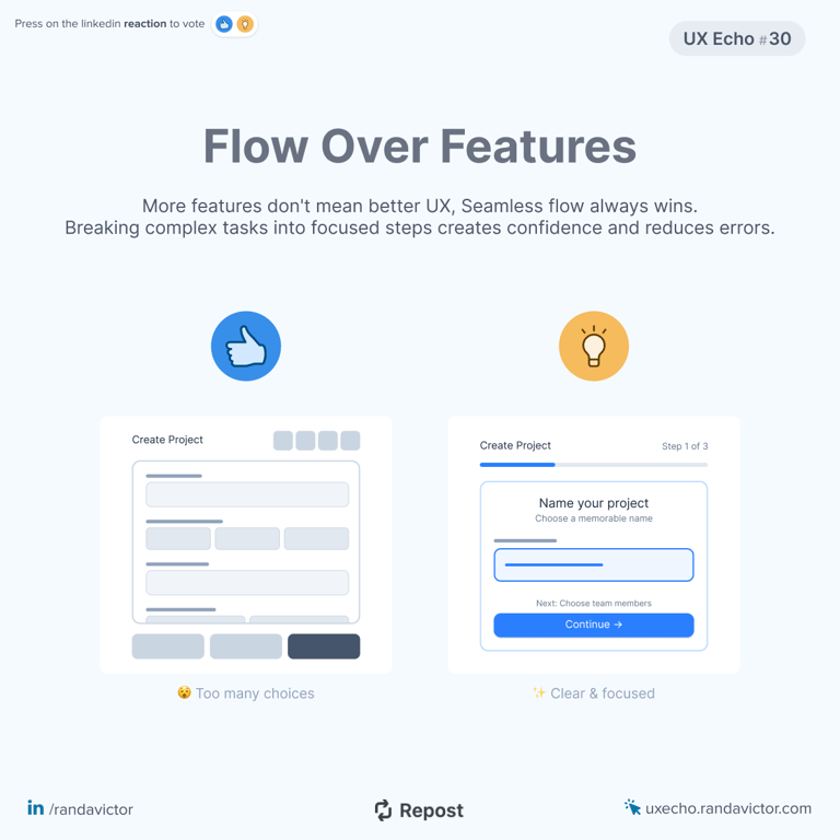 UX Echo is a series I created to share knowledge through bite-sized insights, tips, and reflections on user experience design.